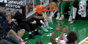 谁碰进的这是?布朗篮下被帽与对手争篮板球直接进筐